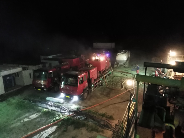 2018年7月30日夜晚到31日凌晨,大慶市東油鉆采有限公司固井隊,對這口井進行了固井施工。注灰1240袋,替清水31.6方,施工**順利,一切正常。